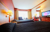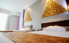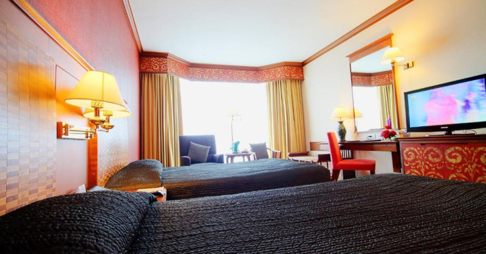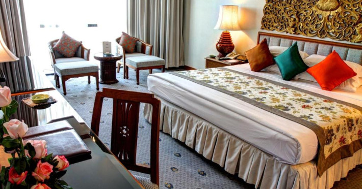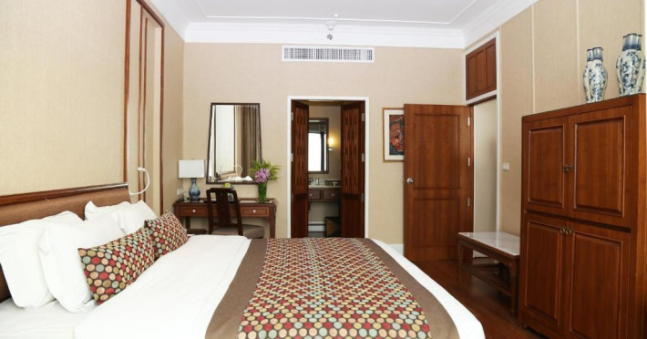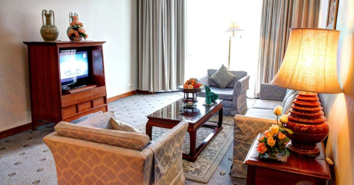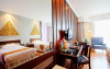 Amenajate in stil asiatic modern, camerele au zonă de relaxare langă o fereastră din podea pană in tavan. Fiecare cameră cu aer condiționat are TV cu canale internaționale și minibar. Băile private din marmură au duș.