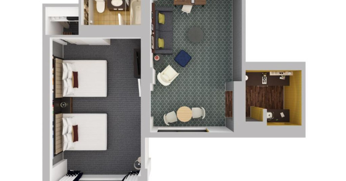 Located on the second floor, the club room lounge boasts modern furnishings, concierge services,The lobby hosts retail space with food, beverage, and sundries.
