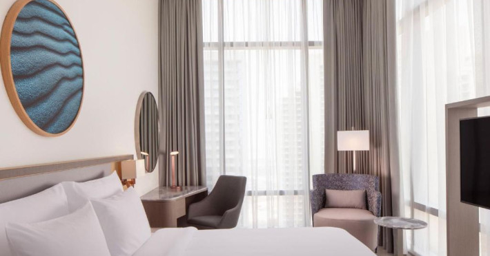 The First Collection at Jumeirah Village Circle, a Tribute Portfolio Hotel este situat in districtul JVC. Hotelul de 41 de etaje are 491 de camere complet echipate. Hotelul se află la 20 de minute de mers cu mașina de centrul orașului Dubai și de vibrantul port de agrement Dubai.