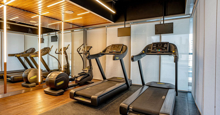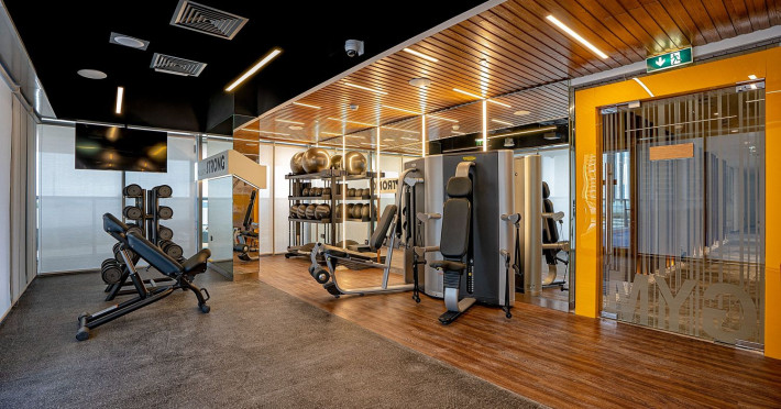 An ultra-modern gym equipped with an extensive range of cardio machines andfree weights provides an ideal training environment for dedicated fitnessenthusiasts.