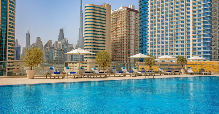 Unwind in a striking 25-metre swimming pool orrelax on the sundeck with refreshing beverages and light bites, all set againstpanoramic views of Downtown Dubai and the iconic Burj Khalifa, the world’stallest building. A smaller adjacent pool offers a safe and enjoyable optionfor families with young children.