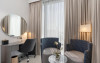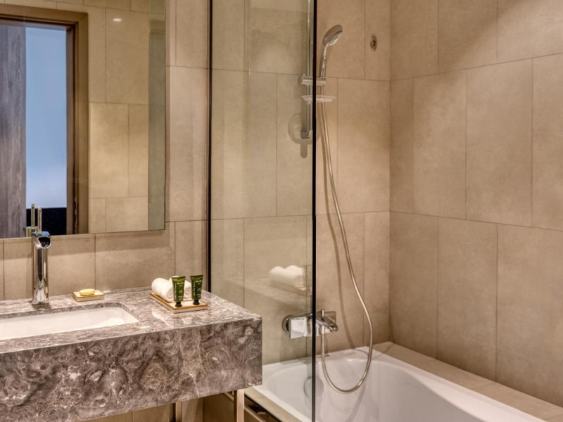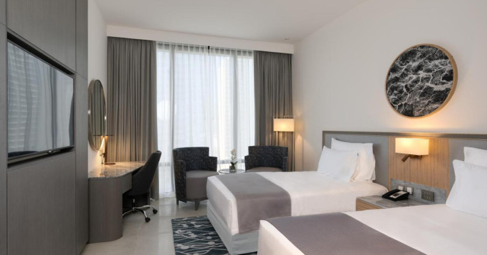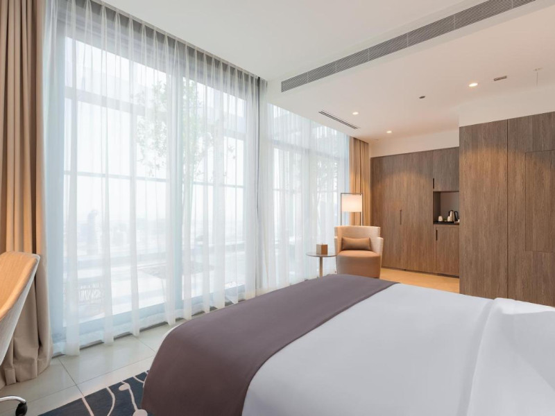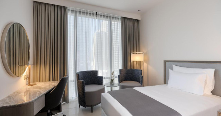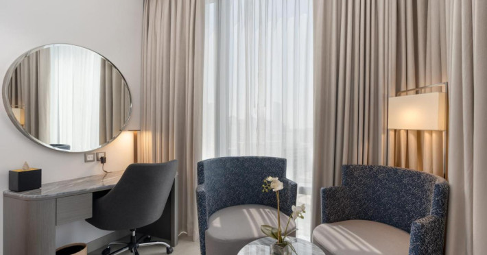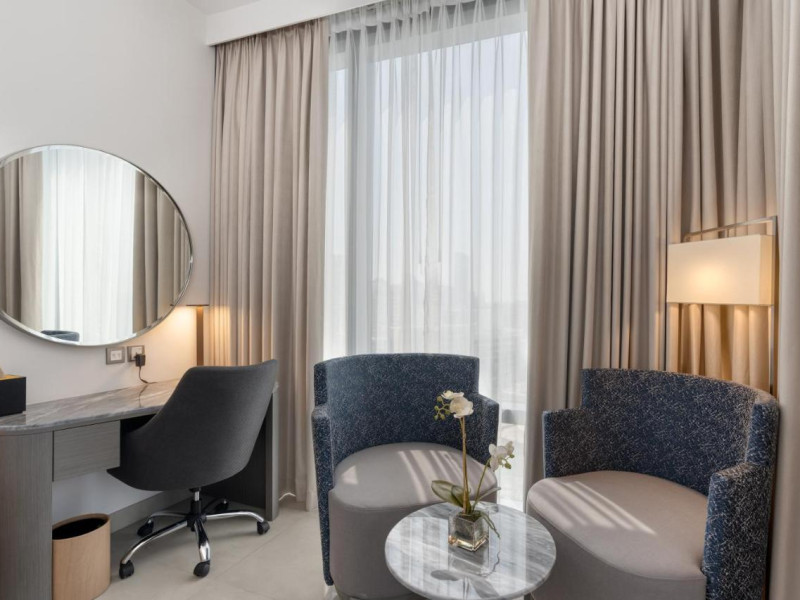 Camerele luminoase de la The First Collection Jumeirah Village Circle sunt dotate cu aer condiționat, Tv și seif. Fiecare cameră oferă cană-fierbător și mașină pentru prepare cafea sau ceai. Oaspeții pot solicita serviciul de room service pentru a servi masa sau diverse băuturi. Unele camere au vedere la oraș. Oaspeții au acces gratuit la serviciul Wi-fi în camere. În camere există baie cu cadă sau duș prevăzută cu foehn. Curățenia in cameră se face zilnic.