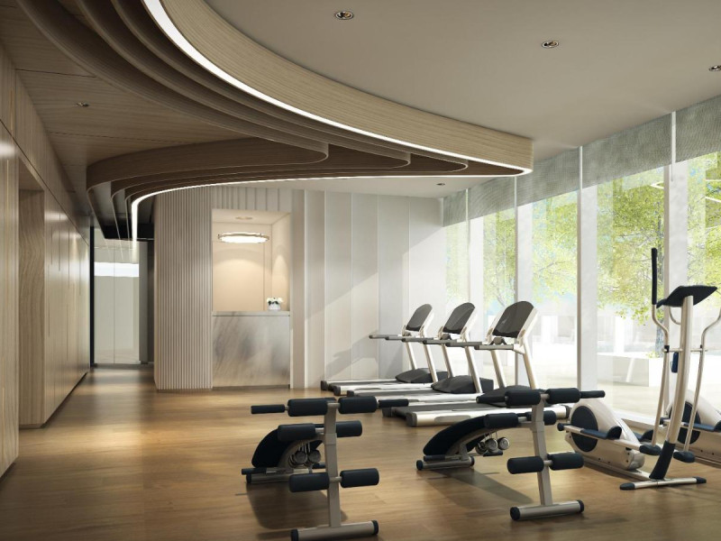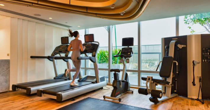 O sală de fitness cu echipamente necesare pentru o gamă variată de exerciții fizice este la dispoziția celor interesați.