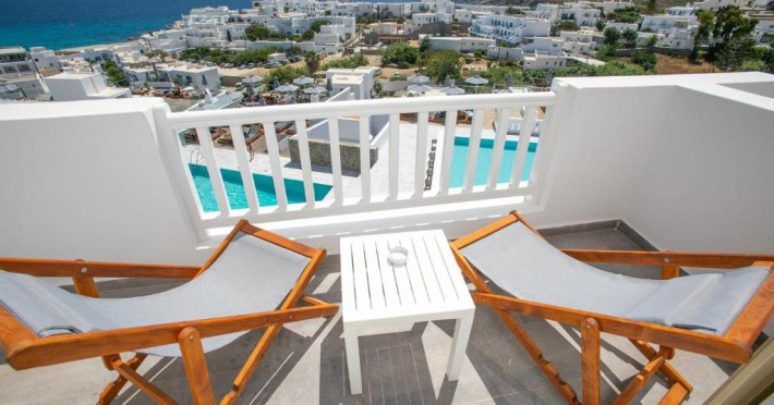 The George Hotel Mykonos se află in satul Platis Yalos și oferă o piscină in aer liber și un snack bar. Include unități de cazare cu aer condiționat, cu vedere directă sau laterală la Marea Egee. Accesul la conexiunea WiFi este disponibil gratuit in toate zonele.