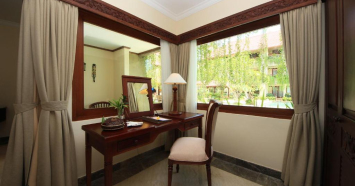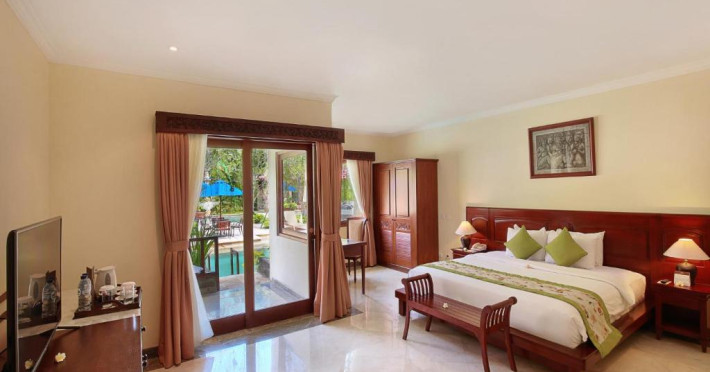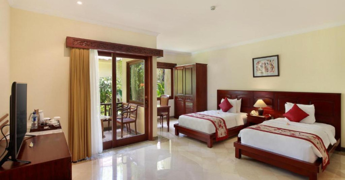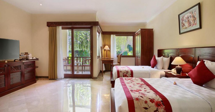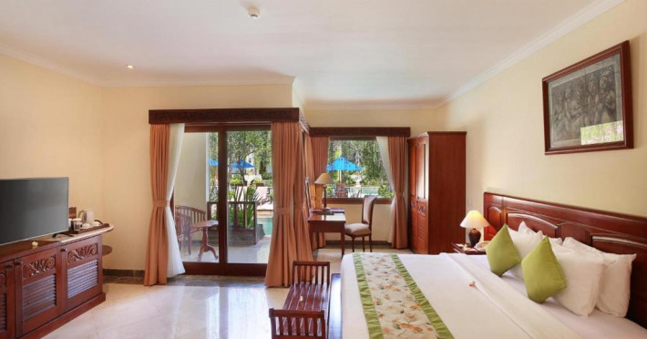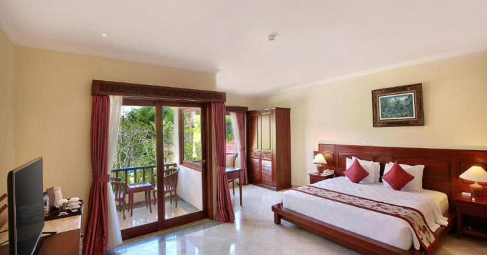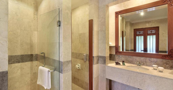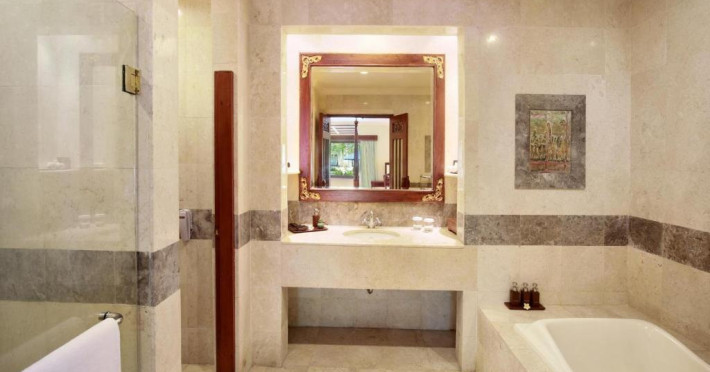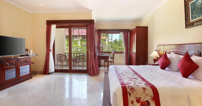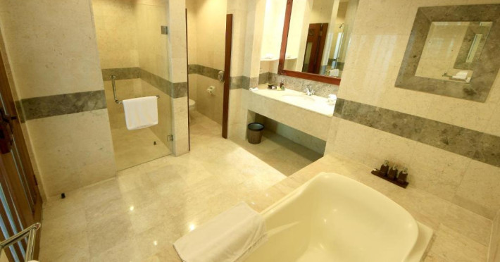 Camerele spațioase de la The Grand Bali Nusa Dua oferă vedere la piscină și grădină și au zone de relaxare. Facilitățile includ TV prin satelit, cutie de valori si facilităti de ceai/cafea. Băile cu finisaje din marmură au cadă și duș separat.