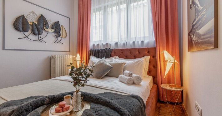 In Bucharest (Bucharest City-Centre). A stay at this apartment places you in the heart of Bucharest, steps from Unirea Shopping Center and 6 minutes by foot from Piata Unirii. This apartment is 0.5 mi (0.8 km) from Manucs Inn and 0.6 mi (0.9 km) from Curtea Veche. Make yourself comfortable in this individually decorated apartment, featuring a kitchen with a full-sized refrigerator/freezer and an oven. Your memory foam bed comes with a down comforter and Egyptian cotton sheets. A 120-cm Smart television with cable programming provides entertainment, while complimentary wireless Internet access keeps you connected. Conveniences include a desk and a separate sitting area, and you can also request a crib/infant bed (complimentary). This apartment offers designated smoking areas.Datorita dinamicitatii domeniului disponibilitatea ofertelor se modifica de la un moment la altul. De aceea ofertele sunt valabile in limita locurilor disponibile. Agentia nu este responsabila pentru eventualele neconcordante care pot aparea intre informatiile privind tarifele si alte detalii din site si informatiile primite in agentie. In aceste cazuri vor avea prioritate, intotdeauna, informatiile primite in agentie.