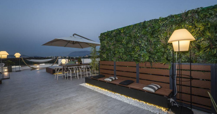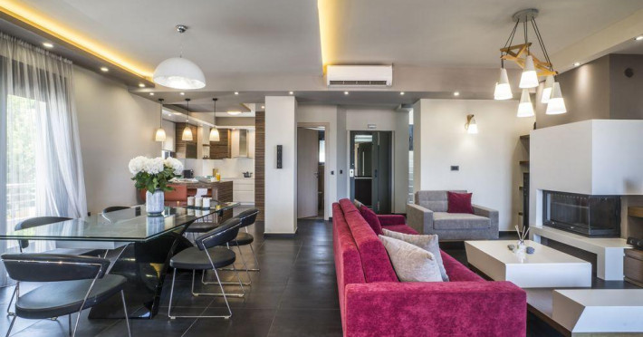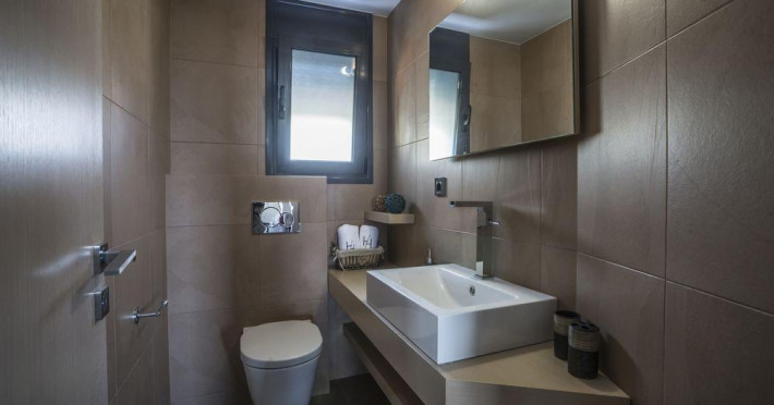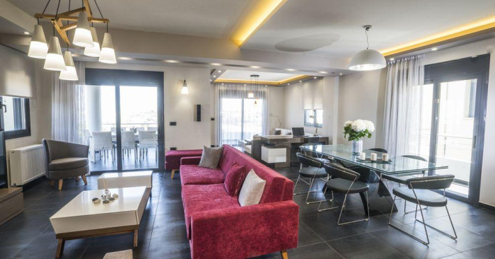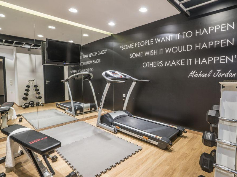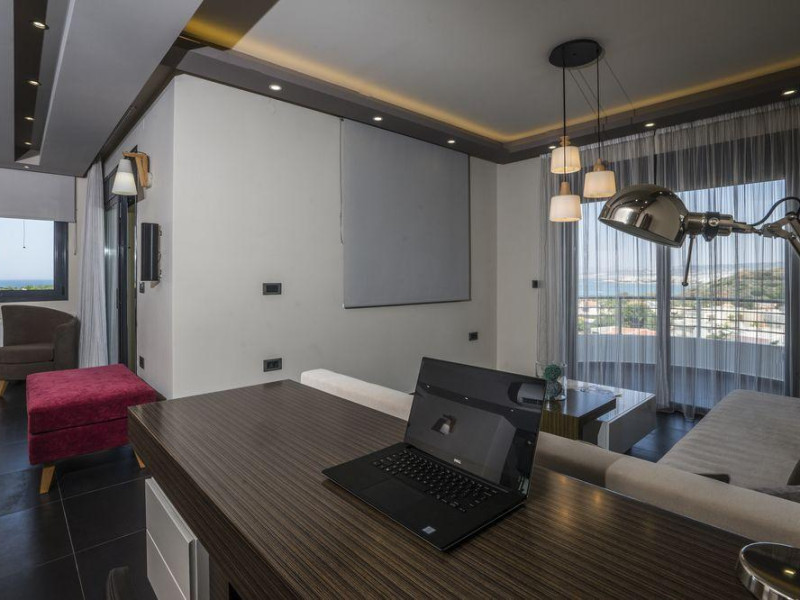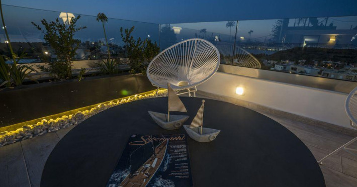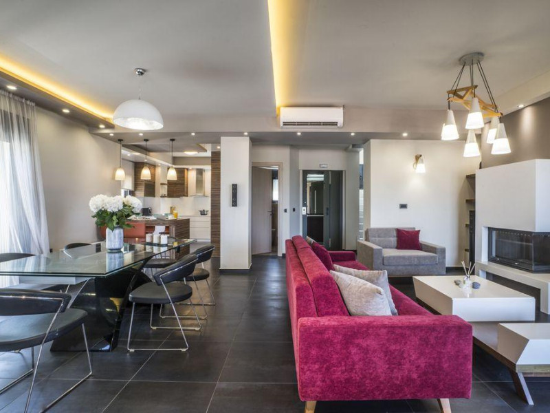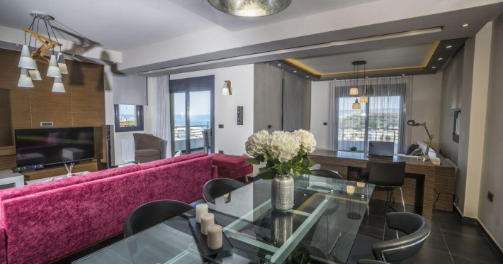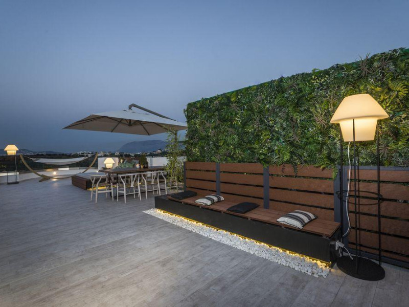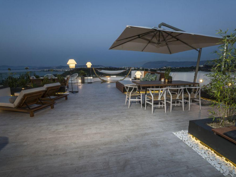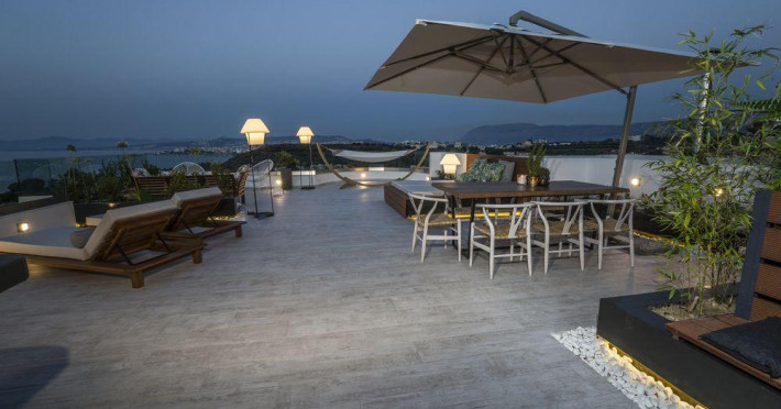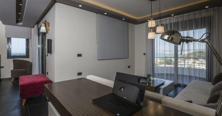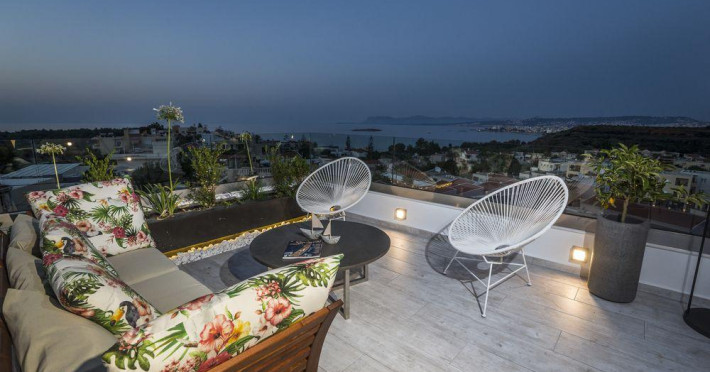 The Hill House is located just 550 m from Chrissi Akti beach in Chania on the beautiful island of Crete. Chania city lies just 4.6 km from The Hill House Villa, while the Historical Museum of Chania is at a distance of 5.5 km. The nearest airport is Chania International Airport, 23.5 km from the villa. The Hill House villa is a modernly designed rental villa in Crete located in the area of Chrissi Akti. Lavishness and elegance is imprinted on contemporary decorated interiors with high-end comforts that give a sense of relaxation and serenity. The villa has the advantage of the magnificent view of the Cretan Sea. The Hill House is a fully equipped vacation home, suitable for family and friends getaways, reunions, and weddings. The 4-level Hill House Villa features wall to wall windows with sea views, along with spacious indoor and outdoor lounge areas.Would you like to exercise during your holidays? Work out in the fully-equipped gym situated on the lower floor. A small paradise is hidden on the top level leading to an incredible place for relaxation. The roof garden is decorated with sunbeds, a hammock and sofas. You can prepare a delicious BBQ meal at the well-organized area and enjoy it in the dining area. Many plants surround the roof garden creating a magical place leaving you breathless with the exquisite endless view of the Sea. The villa promises a unique holiday experience with all the luxurious amenities just 550 meters from the sandy beach of Chryssi Akti. The Villa features : Free Parking on Premises, Amazing Views, 52 inch Flat Screen TV & Cable channels, Free High speed Wi-fi, Swimming Pool, 3 Bathrooms, Fitness facilities, Kitchen & Dining area, Washer & Dryer2, Living rooms, Private Entrance, Roof Garden, BBQ on the roof, Home cinema. The luxury is imprinted on contemporary decorated interiors with high-end comforts that give a sense of relaxation and serenity while the villa has the advantage of the magnificent view of the Cretan Sea.The 4-level villa offers huge lounge areas for relaxation both inside and outside. The interior is influenced by the amazing sea view with big windows from wall to wall. The main entrance is on the first floor which consists of two spacious living rooms, a fully equipped kitchen with electrical appliances and a WC. A dishwasher, an electric oven, a boiler and a microwave can be found.Three airy bedrooms with high quality of mattresses are located on the ground floor. The master room has an en suite bathroom and wardrobe. A fully equipped bathroom with hydro massage shower column is located on the same floor. All bedrooms have TV and air conditioning. Location The Hill House is located just 550 m from Chrissi Akti beach in Chania on the beautiful island of Crete. Chania city lies just 4.6 km from The Hill House Villa, while the Historical Museum of Chania is at a distance of 5.5 km. The nearest airport is Chania International Airport, 23.5 km from the villa. Your Accommodation The Hill House villa is a modernly designed rental villa in Crete located in the area of Chrissi Akti. Lavishness and elegance is imprinted on contemporary decorated interiors with high-end comforts that give a sense of relaxation and serenity. The villa has the advantage of the magnificent view of the Cretan Sea. The Hill House is a fully equipped vacation home, suitable for family and friends getaways, reunions, and weddings. The 4-level Hill House Villa features wall to wall windows with sea views, along with spacious indoor and outdoor lounge areas.Would you like to exercise during your holidays? Work out in the fully-equipped gym situated on the lower floor. A small paradise is hidden on the top level leading to an incredible place for relaxation. The roof garden is decorated with sunbeds, a hammock and sofas. You can prepare a delicious BBQ meal at the well-organized area and enjoy it in the dining area. Many plants surround the roof garden creating a magical place leaving you breathless with the exquisite endless view of the Sea. The villa promises a unique holiday experience with all the luxurious amenities just 550 meters from the sandy beach of Chrissi Akti. The Villa features : Free Parking on Premises, Amazing Views, 52 inch Flat Screen TV & Cable channels, Free High speed Wi-fi, Swimming Pool, 3 Bathrooms, Fitness facilities, Kitchen & Dining area, Washer & Dryer2, Living rooms, Private Entrance, Roof Garden, BBQ on the roof, Home cinema. Rooms The luxury is imprinted on contemporary decorated interiors with high-end comforts that give a sense of relaxation and serenity while the villa has the advantage of the magnificent view of the Cretan Sea.The 4-level villa offers huge lounge areas for relaxation both inside and outside. The interior is influenced by the amazing sea view with big windows from wall to wall. The main entrance is on the first floor which consists of two spacious living rooms, a fully equipped kitchen with electrical appliances and a WC. A dishwasher, an electric oven, a boiler and a microwave can be found.Three airy bedrooms with high quality of mattresses are located on the ground floor. The master room has an en suite bathroom and wardrobe. A fully equipped bathroom with hydro massage shower column is located on the same floor. All bedrooms have TV and air conditioning. Free Sports and Wellness Beach, Outdoor furniture, Outdoor dining area, Sun terrace, Barbecue, Patio, Balcony, Terrace, Roof Garden, Fitness facilities, Swimming Pool, Sun loungers or beach chairs, Hot Tub Sports and Wellness for a Fee Walking tours, Diving (All off-site) Entertainment / Activities 52 inch Flat Screen TV & Cable channels, Home cinema For Children Baby cot, High chair Meals / Drinks Self Catering Official Category ****Location The Hill House is located just 550 m from Chrissi Akti beach in Chania on the beautiful island of Crete. Chania city lies just 4.6 km from The Hill House Villa, while the Historical Museum of Chania is at a distance of 5.5 km. The ne