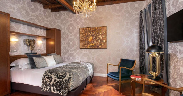 The Inn is a luxurious residence set in a historic building on Via Condotti, Rome's most famous shopping street, near Piazza di Spagna. Breakfast, if included in the rate, is served in the Reception's Building.