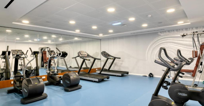 O sală de fitness cu echipamente necesare pentru o gamă variată de exerciții fizice este la dispoziția celor interesați.
