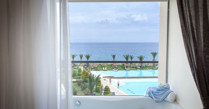 Along a stunning private beachfront on the west coast of Rhodes island lies The Ixian Grand & All Suites Hotel, an all-inclusive haven for adults that enthuses the soul, seduces the senses and nurtures feelings of connection and belonging with your partner like-minded guests. Come for the view and stay a while as you soak up the bliss that comes from the beauty that surrounds you. Let loose and feel carefree through moments stimulated by spontaneous excitement. Fully embodying the sun and sea ideal that Greece is known for, The Ixian Grand & All Suites Hotel is a beachfront property located directly on Ixia beach, Rhodes island. It is a place that allows you to let loose and follow your impulses from morning till night. An adults-only 5 star all-inclusive haven full of spontaneous excitement, for boundless enjoyment and private or shared experiences that are rich with soul satisfaction. The sublime scenery that envelops our property, the spacious living spaces that boast sensational various views and the idyllic, beachfront location which is just 6km from Rhodes old town, are only some of the things that will seduce you. Here, we seek to sweep you off your feet at every chance we get. Our wellness facilities soothe while our fitness activities energize and our exceptional variety of culinary & drink venues gratify. Come for the view and stay a while, to connect and rejoice, without a care in the world, since we are committed to providing you with a canvas to make every waking moment a spontaneous joy-ride, just as you please. 348 rooms & suites | 6 Restaurants & Bars | 3 Freshwater Swimming Pools | Beachfront Location | Relaxing Spa Center | Modern Gym | 5km from Rhodes Town | 7km from RHO International Airport "Diagoras"Datorita dinamicitatii domeniului disponibilitatea ofertelor se modifica de la un moment la altul. De aceea ofertele sunt valabile in limita locurilor disponibile. Agentia nu este responsabila pentru eventualele neconcordante care pot aparea intre informatiile privind tarifele si alte detalii din site si informatiile primite in agentie. In aceste cazuri vor avea prioritate, intotdeauna, informatiile primite in agentie.
