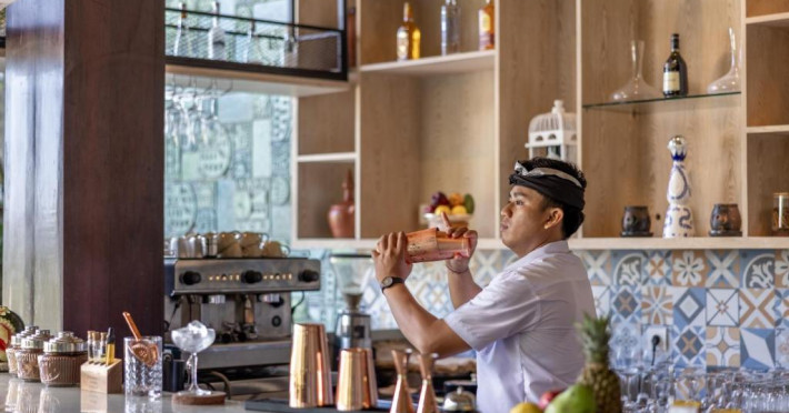 Cocoțat pe puntea de langă piscină, restaurantul servește mancăruri tip bufet și meniu à la carte. Oaspeții pot savura o băutură la barul in aer liber. Proprietatea oferă, de asemenea, grătar și serviciu de luat masa in cameră.