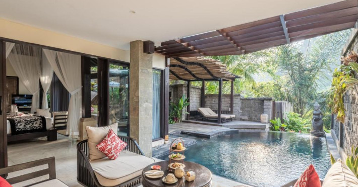 Vilele cu aer condiționat de la The Kayon Valley Resort sunt dotate cu TV cu ecran plat cu canale prin satelit, minibar și cuptor cu microunde. Fiecare vilă are o piscină mică și adancă privată, un balcon sau o terasă cu vedere și o zonă de luat masa pentru două persoane. Cu vedere la verdeață, baia privată are cadă cu hidromasaj, duș și articole de toaletă gratuite.