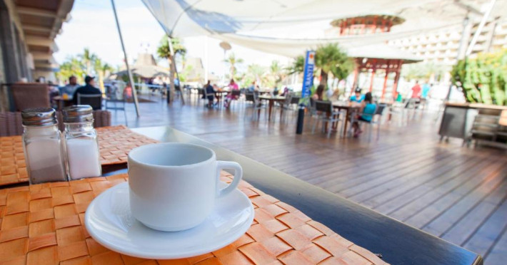 Restaurantul hotelului oferă o gamă largă de preparate spaniole și internaționale, cu bucătărie deschisă și pizza. De asemenea, există un bar la piscină și un bar de seară.