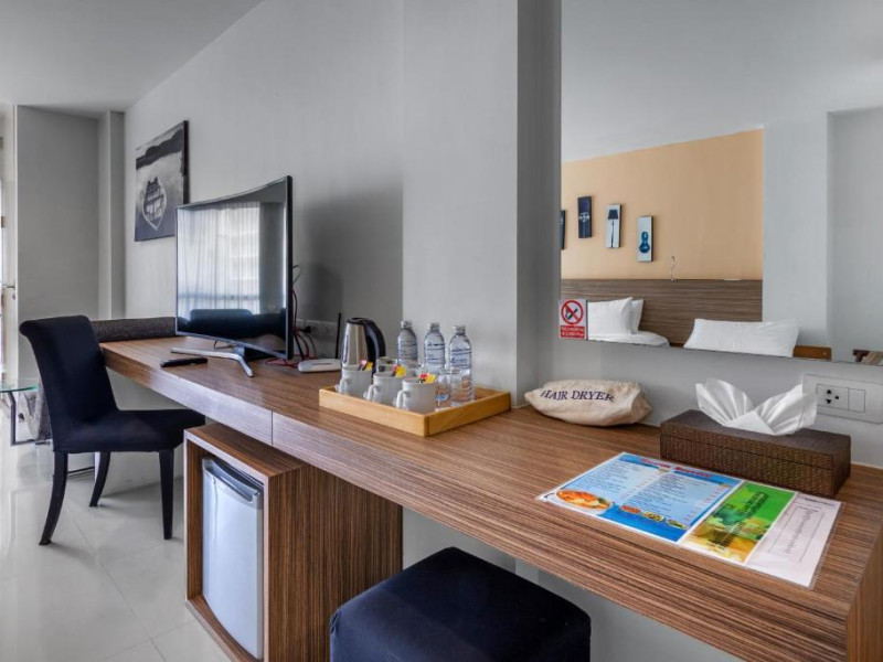 Camerele elegante de la Patong Lantern Resort au un decor modern și sunt dotate cu TV cu ecran plat. Fiecare baie privată include articole de toaletă și dușuri cu apă caldă.