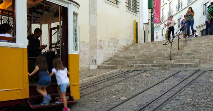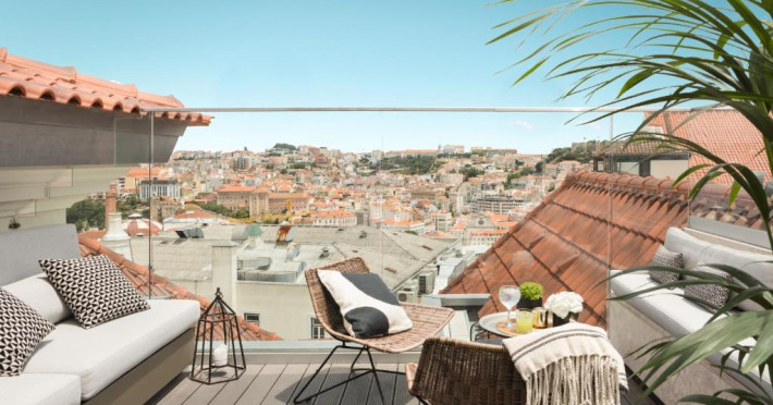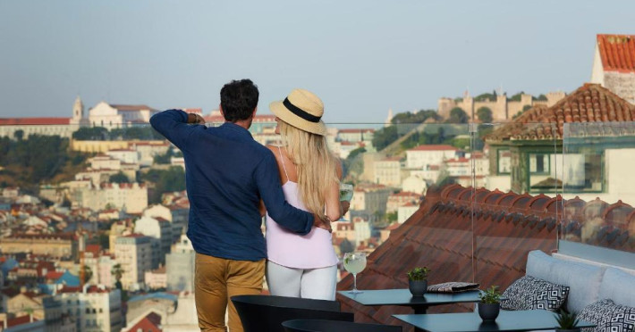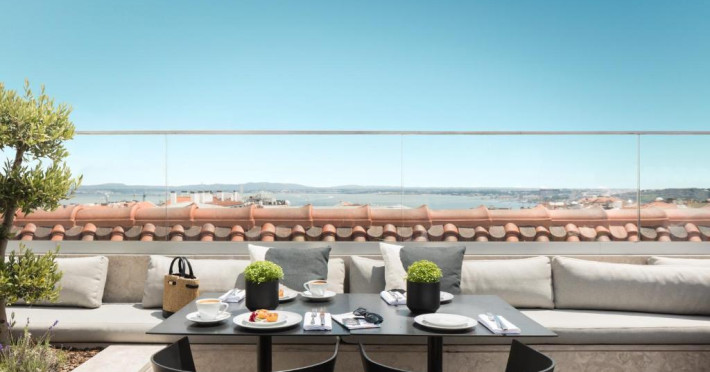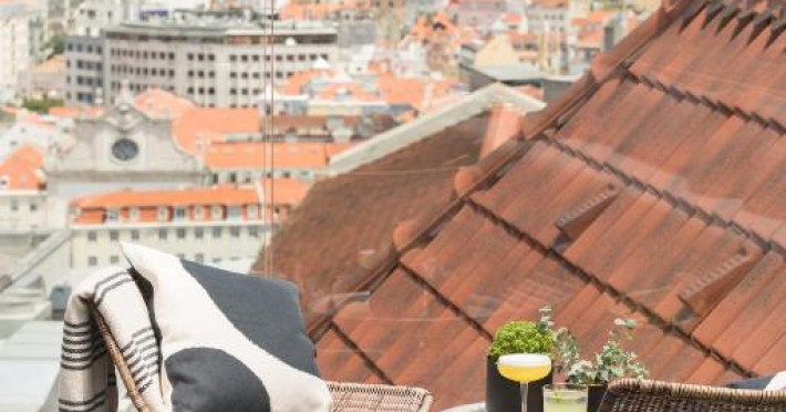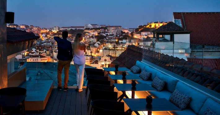 cu vedere de pe acoperiș spre raul Tajo pe de o parte și spre Castelo de São Jorge pe de altă parte.