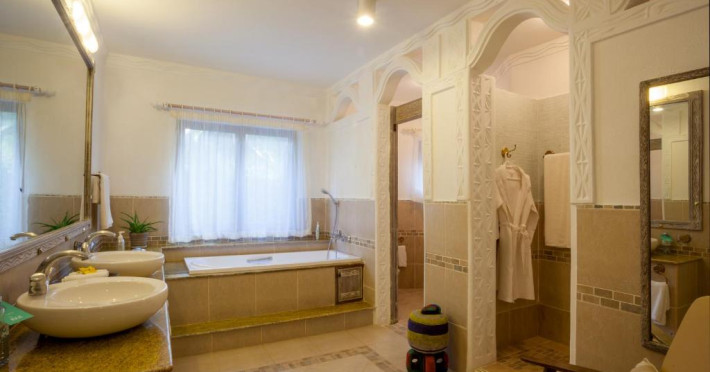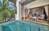 Camerele spațioase, cu aer condiționat, sunt decorate elegant, au un balcon cu vedere la Oceanul Indian și o zonă de relaxare cu TV prin satelit. Unele camere au și o piscină privată. Băile includ halat de baie, papuci și articole de toaletă gratuite.