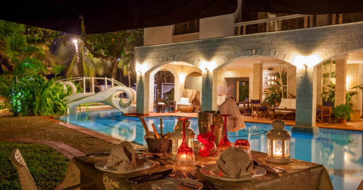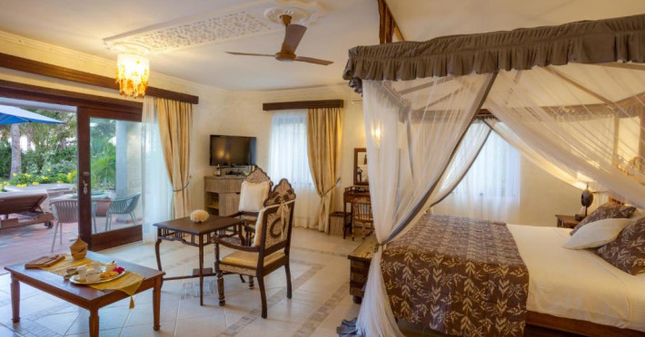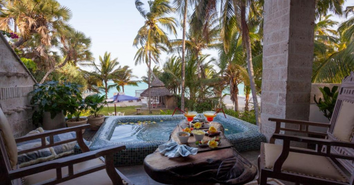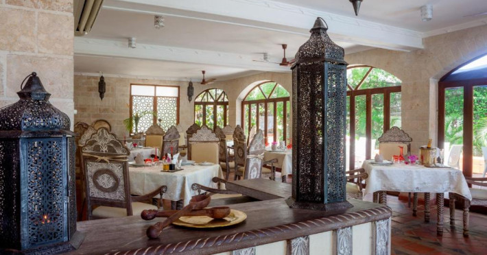 Oaspeții se pot relaxa pe plajă, la piscină sau cu un masaj. Există, de asemenea, o zonă de lounge comună, o bibliotecă și un magazin de suveniruri. Restaurantul servește o gamă largă de preparate din bucătăria swahili, indiană și mediteraneană.