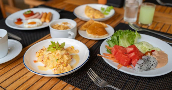 Restaurantul hotelului oferă o gamă largă de mancăruri thailandeze și internaționale pentru a le savura oaspeților. Happy hours sunt disponibile și la bar.