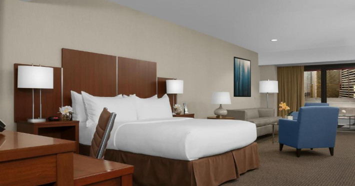 Fiecare cameră de la The Manhattan at Times Square include un birou. Unele camere oferă vedere la orizont și o zonă de relaxare.