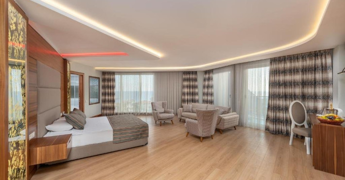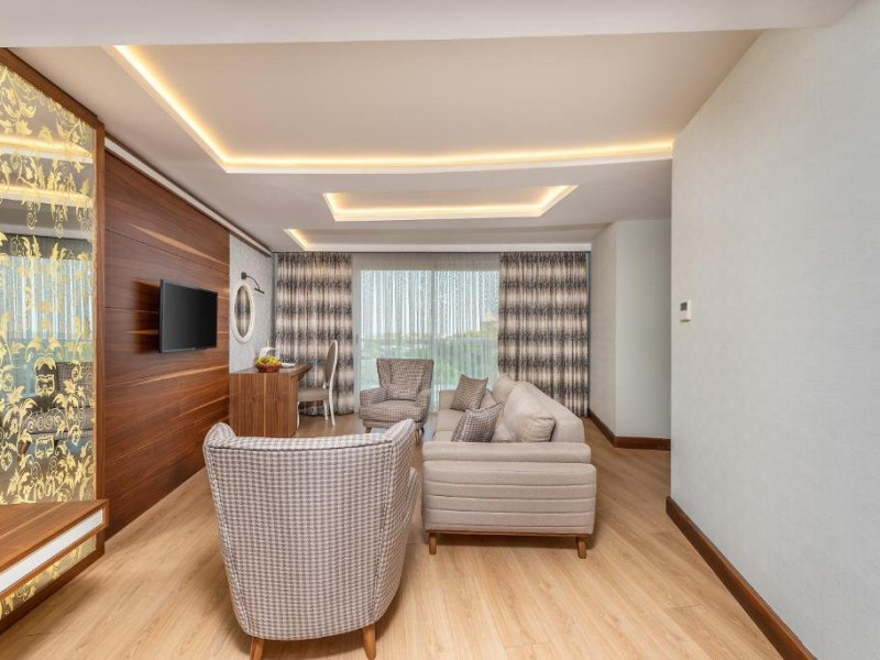 Facilitati hotel: Resortul dispune de urmatoarele facilitati: restaurant, bar, lounge, centru de spa si wellness, sala de intalniri, programe de divertisment pentru adulti si copii, piscina exterioara si aquapark, zona de plaja privata cu serviciu de transfer disponibil, sala de fitness, parcare privata gratuita, gradina, room service, receptie 24h, schimb valutar, hammam, loc de joaca pentru copii, tenis de masa, darts, serviciu rent a car.