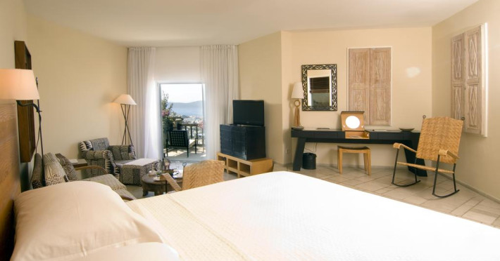 Fiecare cameră dispune de un aparat pentru preparare cafea sau ceai, cană-fierbător și minibar. Oaspeții pot solicita serviciul de room service pentru a servi masa sau diverse băuturi. Camerele luminoase de la The Marmara Bodrum Hotel sunt dotate cu parchet, aer condiționat, Tv cu canale prin satelit și seif. În camere există baie cu cadă sau duș ce are în dotare foehn și articole de toaletă gratuite. Unele camere au balcon cu vedere la mare sau la grădină. Oaspeții au acces gratuit la serviciul Wi-fi în camere. Curățenia in cameră se face zilnic. Anumite camere au zonă de relaxare cu canapea și cadă cu hidromasaj care asigură un plus de confort și răsfăț. Proprietatea oferă camere pentru nefumători.