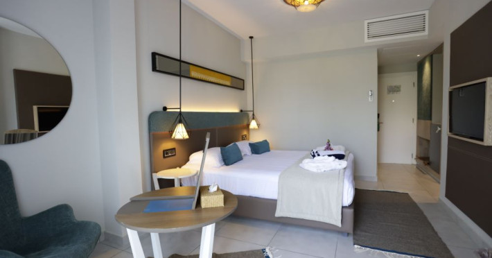 Toate camerele hotelului sunt dotate cu balcon sau terasa mobilata, aer condiționat, Wifi, seif, minibar (cu plata, la cerere), TV, cadă/ duș, uscător de păr, halate de baie, articole de toaletă (reumplute zilnic).
