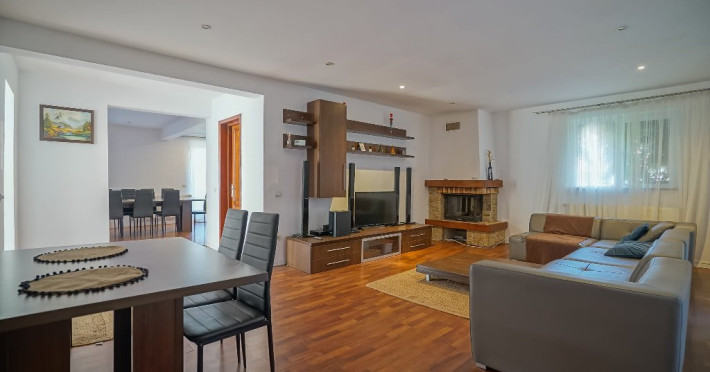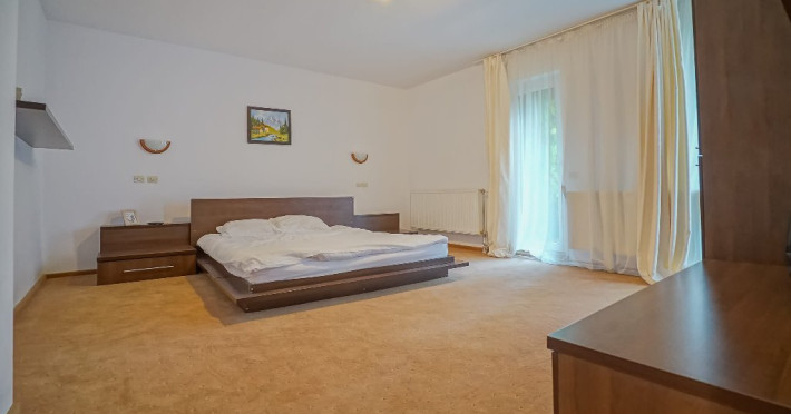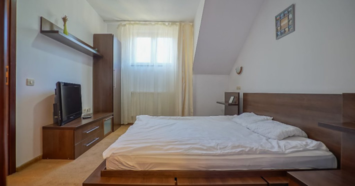 Vila se rezerva integral. Cele 6 camere cu pat dublu, king size Ci baie proprie pot acomoda pA?n la 12 persoane. Living room-ul cu semineu, buctria complet utilat si zona de dining v permit desfCurarea restului de activitCi din interiorul vilei.La exterior, vila ofera facilitati de recreere, loc de joaca pentru copii, gratar si ceaun.