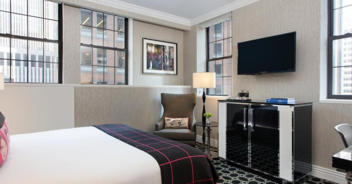 Acest hotel de 4 stele situat in cartierul teatrului din Manhattan este la 650 de metri de Rockefeller Center. Hotelul de tip boutique este ecologic. Oferă un centru de fitness de ultimă generație și camere cu TV cu ecran plat de 37 inch.