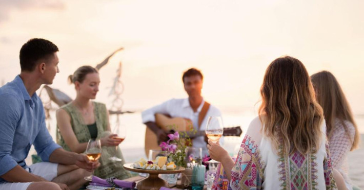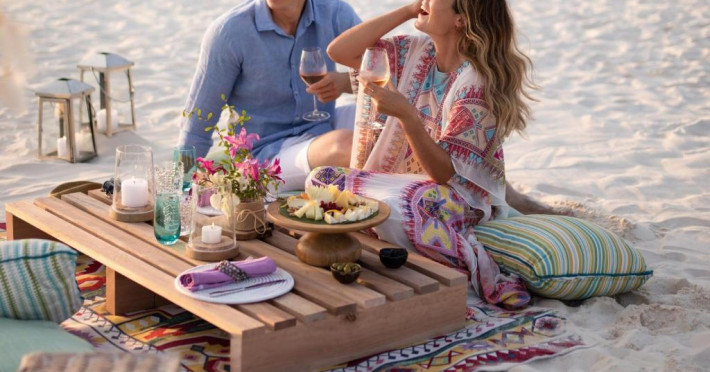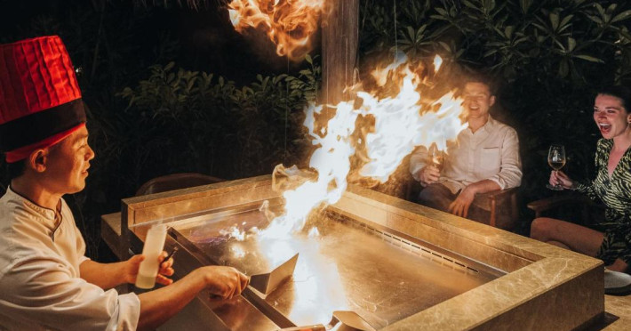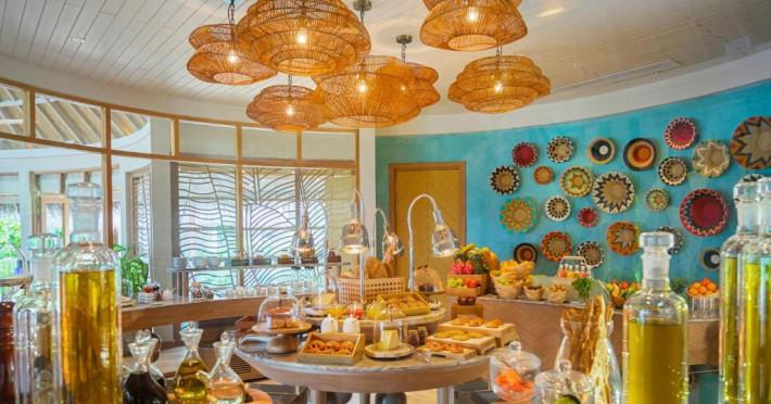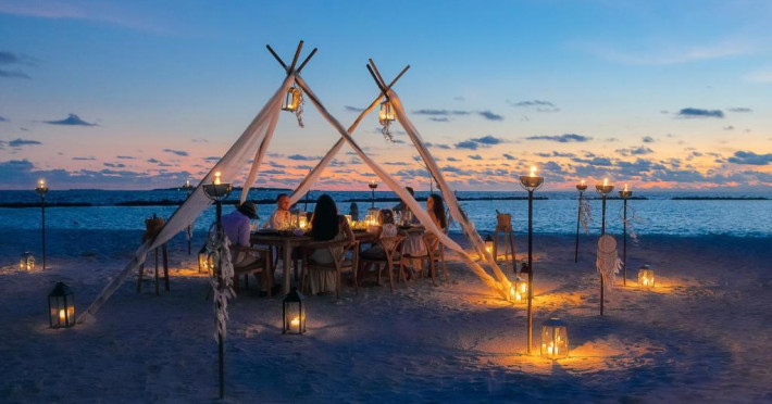 Plaja privată cu nisip alb fin se intinde de-a lungul intregii proprietăți, oferind un cadru perfect pentru relaxare. Restaurantele de clasă mondială ale resortului servesc preparate rafinate, de la bucătăria asiatică pană la cea mediteraneană, cu opțiunea de a lua masa oriunde și oricand doriți.