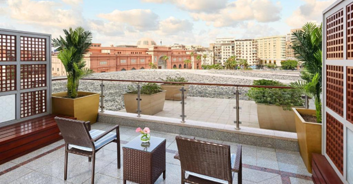 Situat in inima orașului Cairo, se află emblematicul Nile Ritz-Carlton Cairo, situat intre raul Nil, Piața Tahrir și langă Muzeul Egiptean. Hotelul oferă vederi panoramice asupra cornișei Nilului și se află la doar o plimbare de Podul Qasr El Nil și de Opera din Cairo. Oaspeții se pot bucura de WiFi gratuit atat in zonele publice, cat și in cameră.