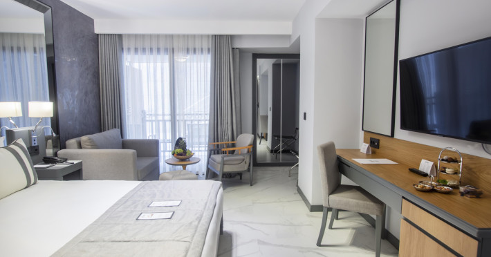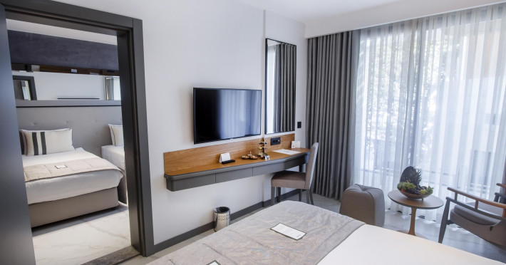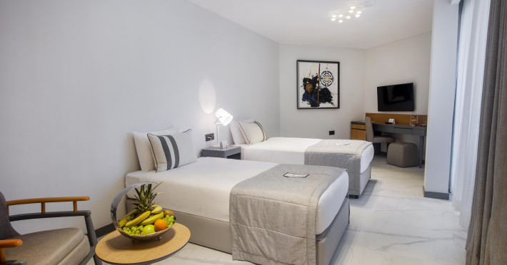 Camerele luminoase de la The Oba sunt dotate cu aer condiționat și Tv cu canale prin satelit. Fiecare cameră dispune de minibar și cană-fierbător. Oaspeții pot solicita serviciul de room service pentru a servi masa sau diverse băuturi. În camere există baie cu cadă sau duș ce are în dotare foehn și articole de toaletă gratuite. Camerele au balcon cu vedere la mare sau la piscină. Oaspeții au acces gratuit la serviciul Wi-fi în camere. Curățenia in cameră se face zilnic. Proprietatea oferă camere pentru familie cu o suprafață mai mare și un număr mai mare de paturi față de cele standard.