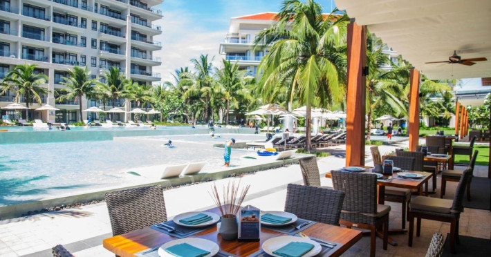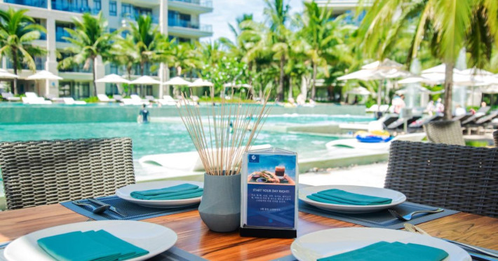 Restaurantul hotelului, White Caps Restaurant, servește o gamă largă de preparate europene și vietnameze.