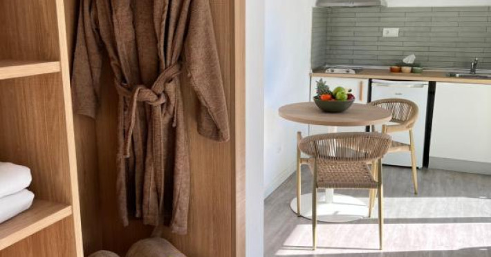 Fiecare apartament și studio luminos de la The Palm Star Ibiza - Adults Only are decor simplu. Au o chicinetă in plan deschis, o baie privată și un living cu TV prin satelit.