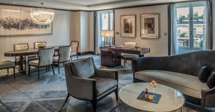 Toate cele 200 de camere și suite sunt decorate cu opere de artă și mobilier elegant. Fiecare dintre ele oferă un dressing mare separat, cu spațiu pentru bagaje și pentru haine. Băile spațioase din marmură au duș separat cu efect de ploaie și cadă adancă, precum și televizor incorporat, uscător pentru unghii și articole de toaletă de lux marca Oscar de la Renta.