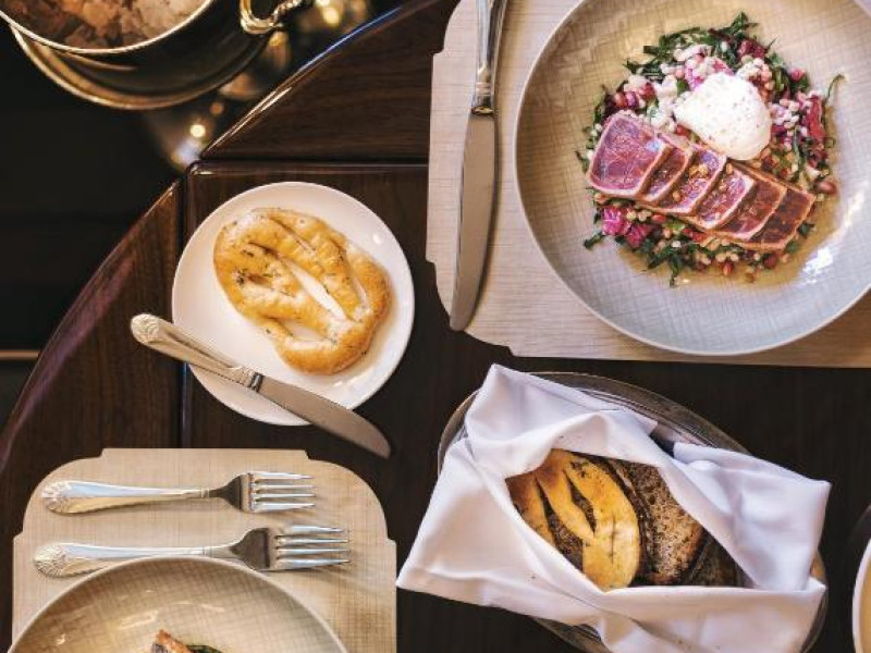Hotelul The Pierre a găzduit numeroase evenimente sociale de la deschiderea sa, in anul 1930. Restaurantul Perrine al hotelului oferă bucătărie modernă sezonieră americană, cu specialități zilnice inspirate de preparate culinare clasice Pierre. De asemenea, la hotel se află lounge-barul Two E, care servește ziua tradiționalul ceai de după amiază, iar seara (de luni pană joi) oferă un program live de muzică jazz.