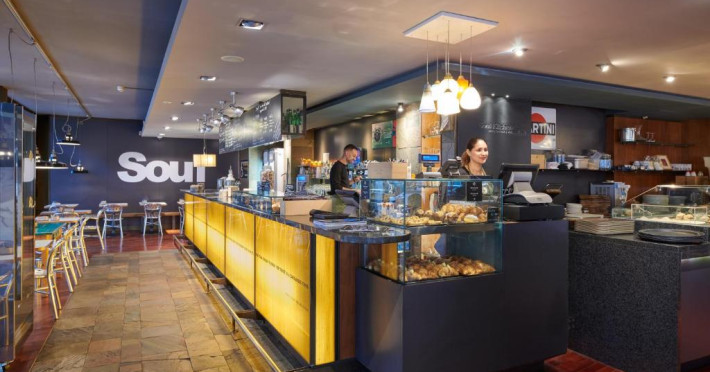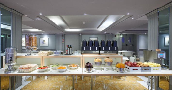 Micul dejun servit la Hotelul Plaza constă intr-un bufet extins, care include ouă, bacon, fructe proaspete si o varietate de produse de patiserie. Restaurantul hotelului, Soul Kitchen, este deschis pe tot parcursul zilei si oferă un meniu eclectic de preparate italiene si internaționale.