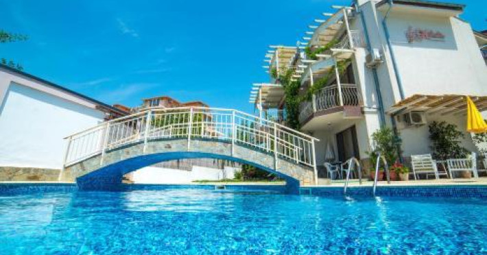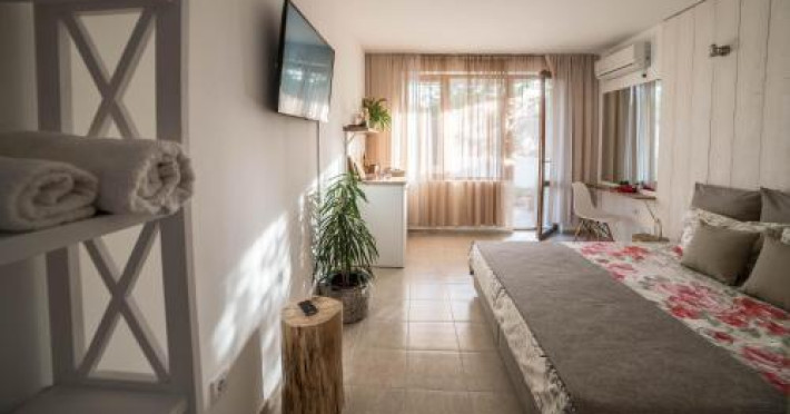 The Poolhouse in Sunny Beach provides accommodations with a seasonal outdoor swimming pool and a garden. There's a private entrance at the apartment for the convenience of those who stay. The apartment provides rooms with air conditioning, free private parking, and free Wifi. The apartment provides guests with a terrace, a seating area, cable flat-screen TV, a fully equipped kitchenette with a toaster and a fridge, and a private bathroom with shower and bathrobes. All rooms are equipped with a kettle, while some have a balcony. At the apartment complex, all units are equipped with bed linen and towels. A mini-market is available at the apartment. Sightseeing tours are available in the vicinity of the property. A car rental service is available at The Poolhouse, while hiking can be enjoyed nearby. Sunny Beach is a 8-minute walk from the accommodation, while Action AquaPark is 2 miles from the property. Burgas Airport is 20 miles away, and the property offers a paid airport shuttle service.WiFi is available in the hotel rooms and is free of charge. Free private parking is available on site (reservation is not needed). Pets are not allowed. Children of all ages are allowed.Children 1 and under stay for free when using an available crib.Children 17 and under stay for BGN 80 per person, per night when using an existing bed.People no matter the age stay for BGN 10 per person, per night when using an available extra bed.Any type of extra bed or crib is upon request and needs to be confirmed by management.Additional fees are not calculated automatically in the total cost and will have to be paid for separately during your stay. Checkin Time: 15:00 Checkin End Time: 22:00 Checkout From: 06:00 Checkout End Time: 11:00 Hotel important information: Please inform The Poolhouse of your expected arrival time in advance. You can use the Special Requests box when booking, or contact the property directly using the contact details in your confirmation. This property does not accommodate bachelor(ette) or similar parties.The Poolhouse in Sunny Beach provides accommodations with a seasonal outdoor swimming pool and a garden. There's a private entrance at the apartment for the convenience of those who stay. The apartment provides rooms with air conditioning, free private parking, and free Wifi. The apartment provides guests with a terrace, a seating area, cable flat-screen TV, a fully equipped kitchenette with a toaster and a fridge, and a private bathroom with shower and bathrobes. All rooms are equipped with a kettle, while some have a balcony. At the apartment complex, all units are equipped with bed linen and towels. A mini-market is available at the apartment. Sightseeing tours are available in the vicinity of the property. A car rental service is available at The Poolhouse, while hiking can be enjoyed nearby. Sunny Beach is a 8-minute walk from the accommodation, while Action AquaPark is 2 miles from the property. Burgas Airport is 20 miles away, and the property offers a paid airport shuttle service.WiFi is available in the hotel rooms and is free of charge. Free private parking is available on site (reservation is not needed). Pets are not allowed. Children of all ages are allowed.Children 1 and under stay for free when using an available crib.Children 17 and under stay for BGN 80 per person, per night when using an existing bed.People no matter the age stay for BGN 10 per person, per night when using an available extra bed.Any type of extra bed or crib is upon request and needs to be confirmed by management.Additional fees are not calculated automatically in the total cost and will have to be paid for separately during your stay. Checkin Time: 15:00 Checkin End Time: 22:00 Checkout From: 06:00 Checkout End Time: 11:00 Hotel important information: Please inform The Poolhouse of your expected arrival time in advance. You can use the Special Requests box when booking, or contact the property directly using the contact details in your confirmation. This property does not accommodate bachelor(ette) or similar parties.