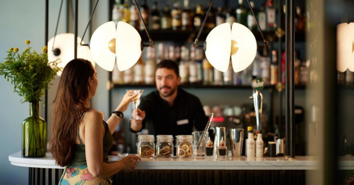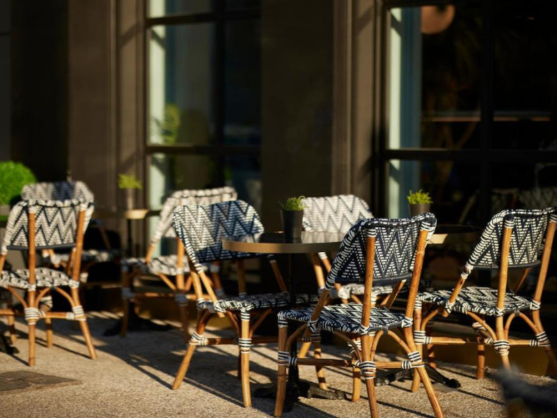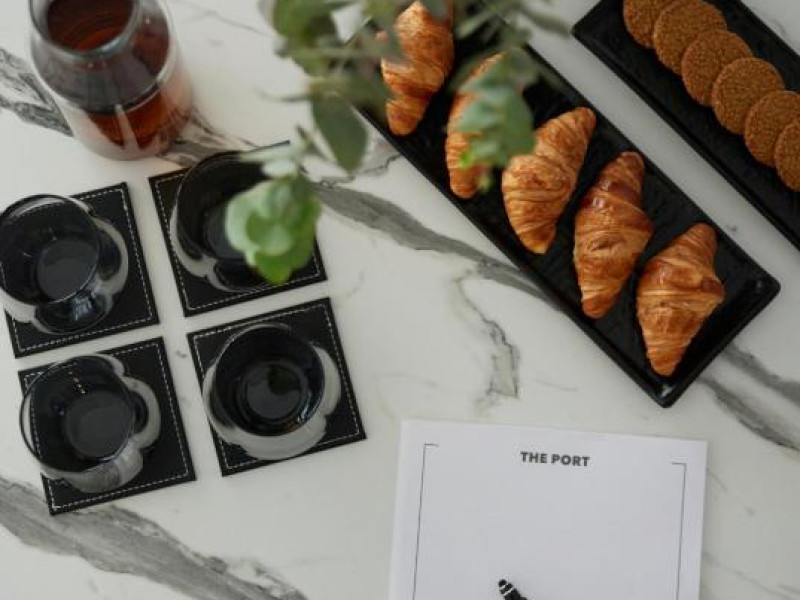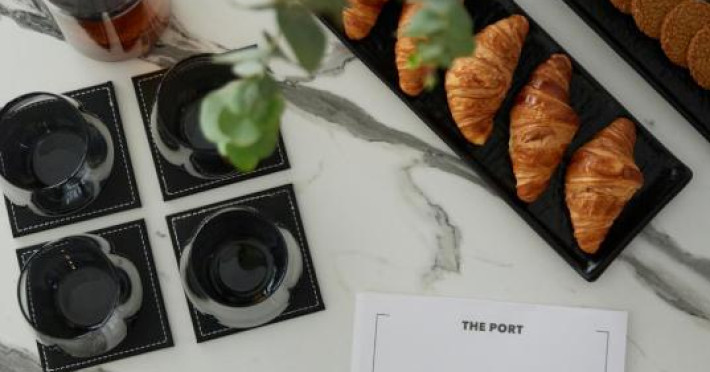 Oaspeții cazați la The Port Square Hotel au la dispoziție un mic dejun tip bufet. Acest hotel are un restaurant care servește mancăruri din bucătăria grecească, mediteraneană și internațională. La cerere, sunt disponibile și preparate vegetariene, fără lactate și vegane.
