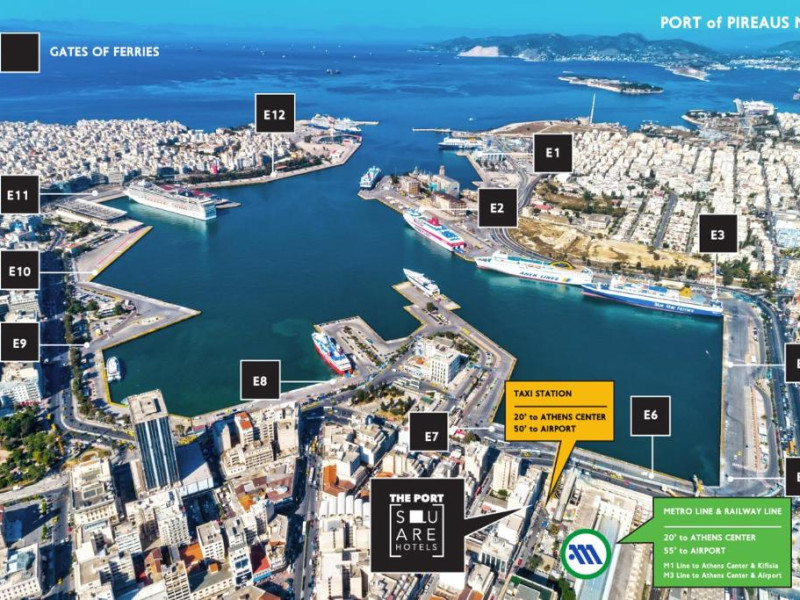 The Port Square Hotel se găsește in centrul orașului Pireu, la 2,1 km de Plaja Votsalakia, și oferă un bar. Acest hotel de 4 stele oferă un centru de afaceri și un serviciu de concierge. Proprietatea oferă o recepție deschisă non-stop, servicii de transport de la/la aeroport, room-service și WiFi gratuit in proprietate.