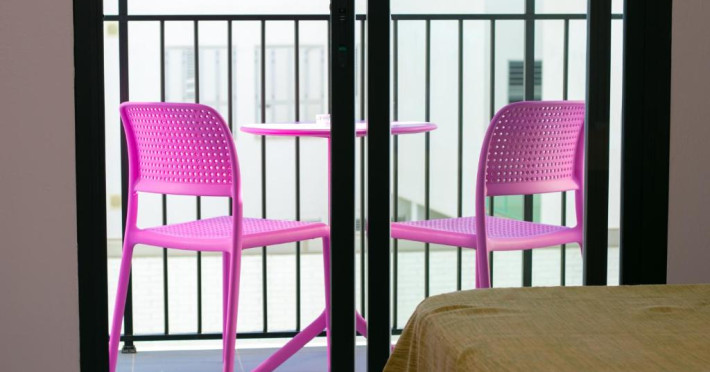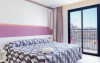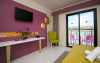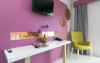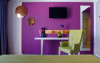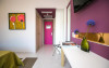 Vopsite in violet, dormitoarele cu aer condiționat includ un TV cu ecran plat, WiFi gratuit și o baie.