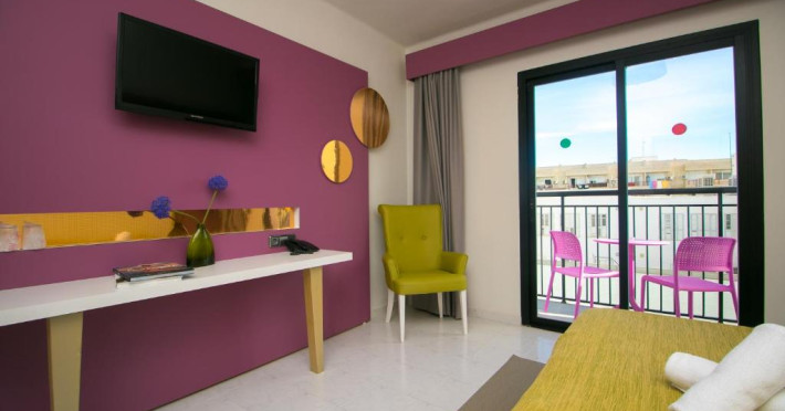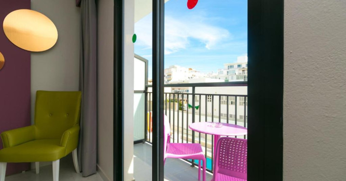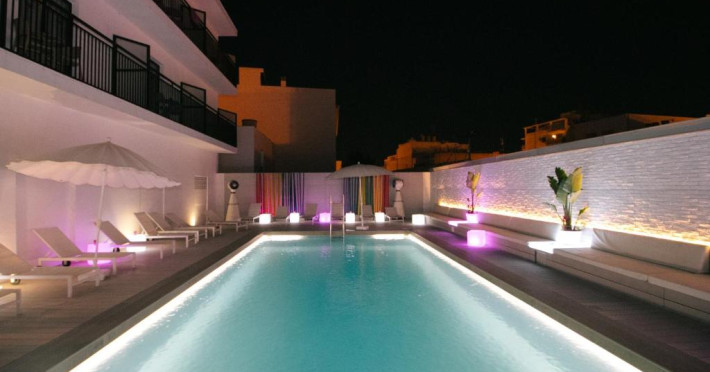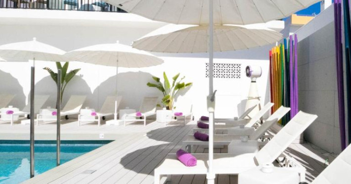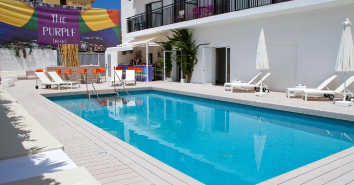 Hotelul Purple - Gay Super Friendly are o piscină in aer liber și o terasă la soare in Sant Antoni De Portmany. Cafe del Mar, Mambo, Savannah și Coastline Cafe sunt la 7 minute de mers pe jos.