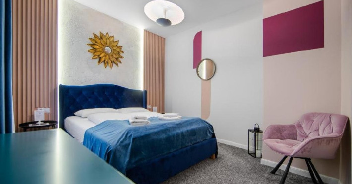 Apartament deluxe - suprafata 80 mp, un pat king size si canapea.