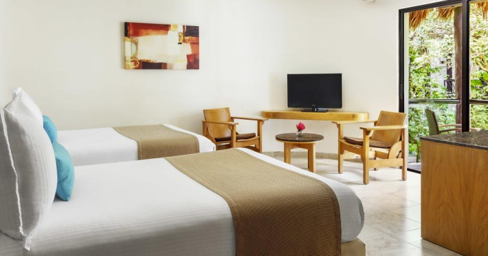 Descriere: Situat pe coasta Rivierei Maya, la doar cativa pasi de Playa del Carmen, acest complex all inclusive ofera unitati de cazare aflate pe malul marii, fiind inconjurate de vegetatie luxurianta si ape limpezi caraibiene.Programul all inclusive de la Reef Playacar include toate mesele, gustari si bauturi. Oaspetii se pot relaxa cu un masaj la centrul spa, in timp ce copiii se distreaza la clubul complexului, dedicat exclusiv lor.