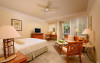 The bright airy rooms are air conditioned and come with a flat-screen satellite TV and a balcony or terrace with views over tropical gardens, ocean or lagoon. The private bathrooms come with a bath or shower and hairdryer. Butler service is available in each room.