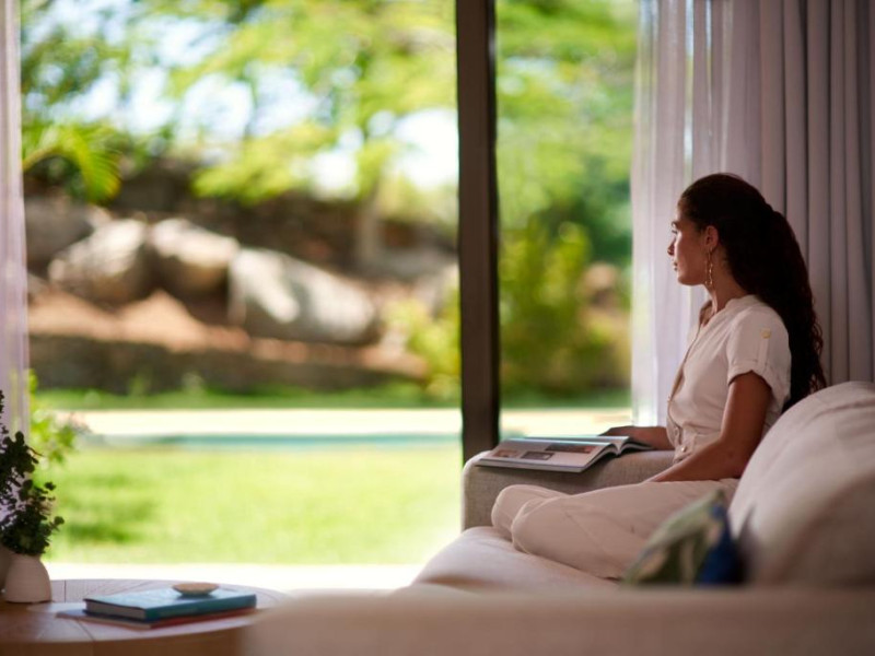 Fiecare cameră și vilă are un stil etnic, iar majoritatea se bucură de vedere la grădini și la Oceanul Atlantic. Toate sunt dotate cu băi de lux din marmură, televizoare interactive și acces la internet.