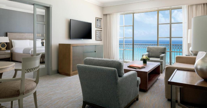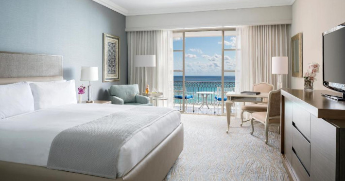 Camerele elegante de la Ritz-Carlton Cancun au minibar si birou. Toate camerele au balcon cu vedere la ocean. Baia privată include halate de baie, papuci si uscător de păr.