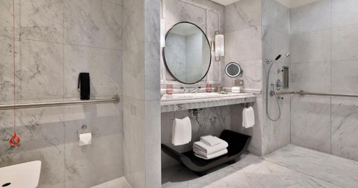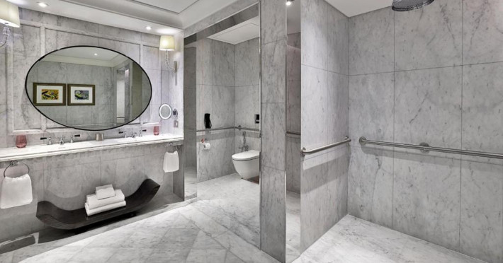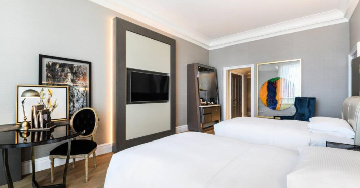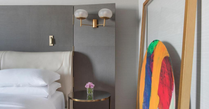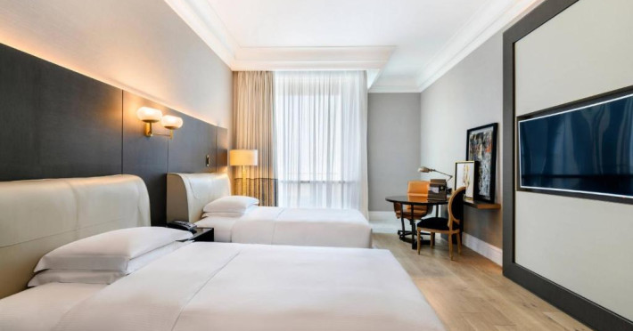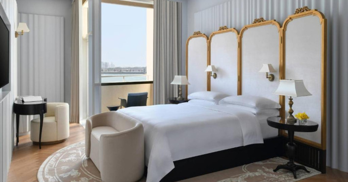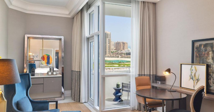 Camerele au vedere pitorească la Golful Arabiei si la orizontul orasului Doha. Fiecare cameră si suită este amenajată elegant, in stil contemporan, și pune la dispoziție un balcon confortabil, iluminat natural abundent si băi de marmură cu cadă si dus separate.