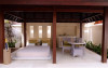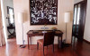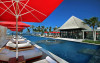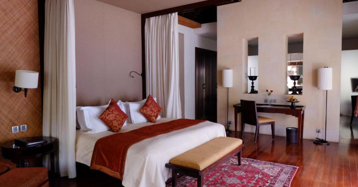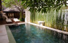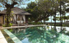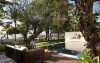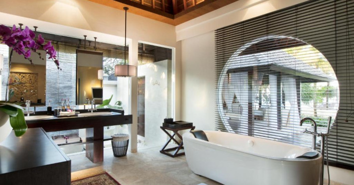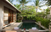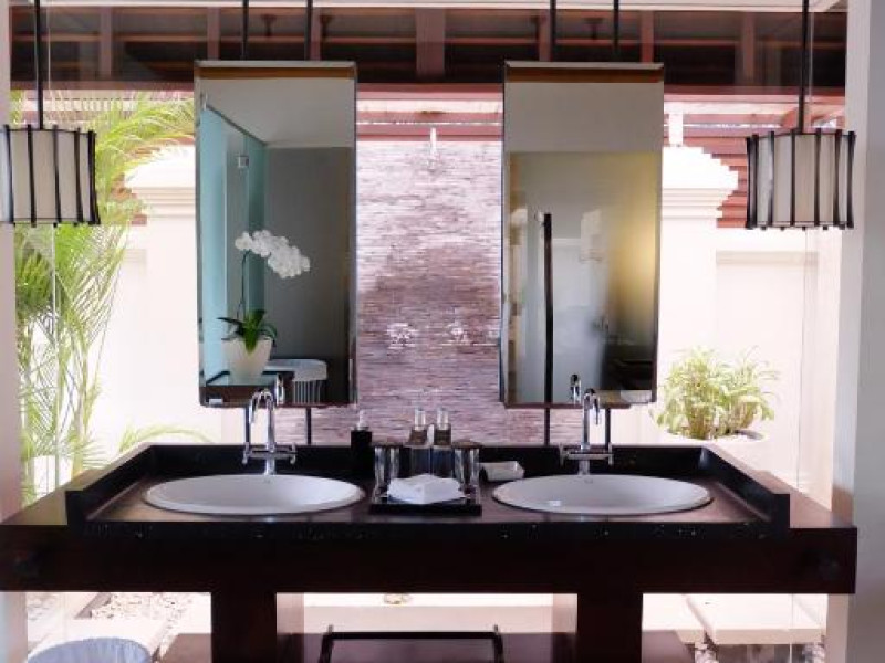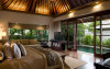 Cu o arhitectură tradițională, vila de la Royal Santrian are zone separate de living și de luat masa. Fiecare este dotată cu TV cu ecran plat, docking station pentru iPod și un pat de zi cu vedere la piscină. Vilele oferă, de asemenea, o cadă și un duș interior și exterior.