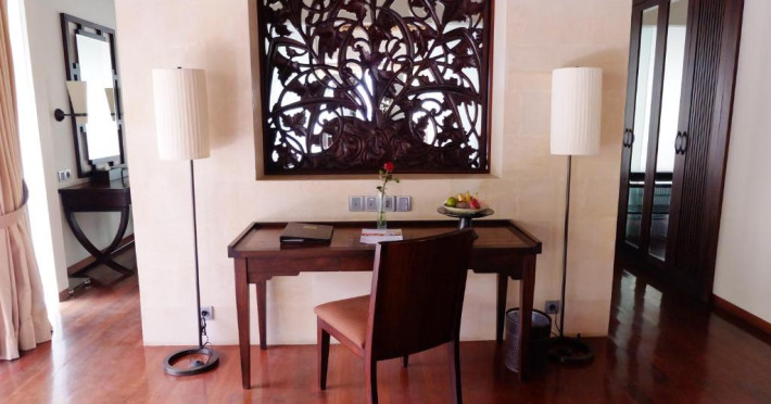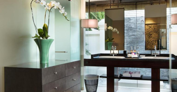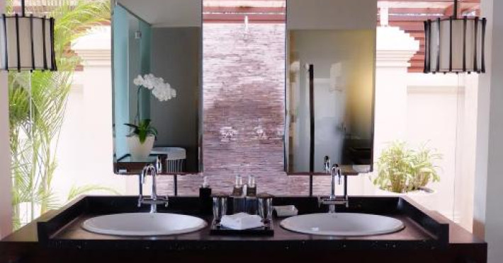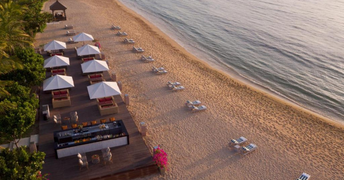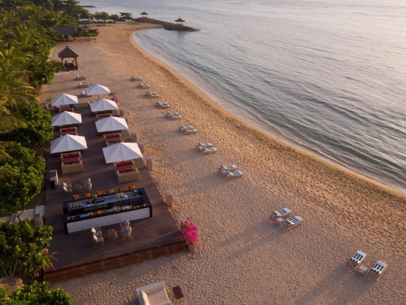 Situat pe malul plajei Nusa Dua, The Royal Santrian oferă servicii gratuite de transfer și Wi-Fi gratuit. La 5 minute de mers cu mașina de centrul comercial Bali Collection și de zona de sporturi nautice, acesta oferă un restaurant cu vedere la mare, un bar la piscină și vile cu piscine private. Oaspeții se pot bucura, de asemenea, de ceaiul zilnic de după-amiază, reaprovizionarea gratuită a minibarului cu băuturi răcoritoare, sucuri și bere, precum și de un serviciu gratuit de transfer către zonele Nusa Dua și Tanjung Benoa.