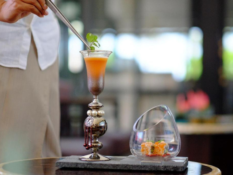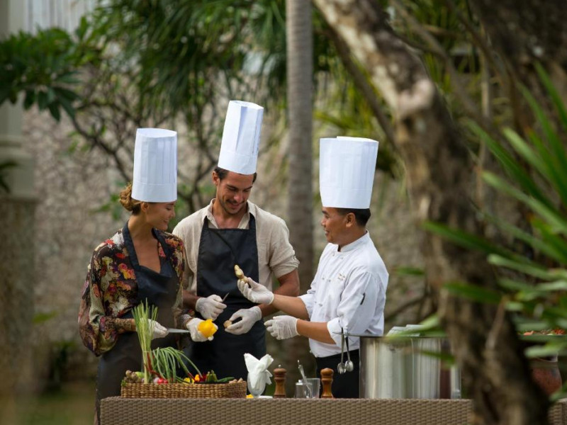 Oferind vedere la plaja cu nisip alb, restaurantul Allspice servește o varietate de preparate japoneze, thailandeze și occidentale. Micul dejun poate fi savurat la restaurant sau in intimitatea vilei. O gamă largă de băuturi este disponibilă la Martini Bar. De asemenea, se poate aranja un grătar privat pe plajă sau in vilă.